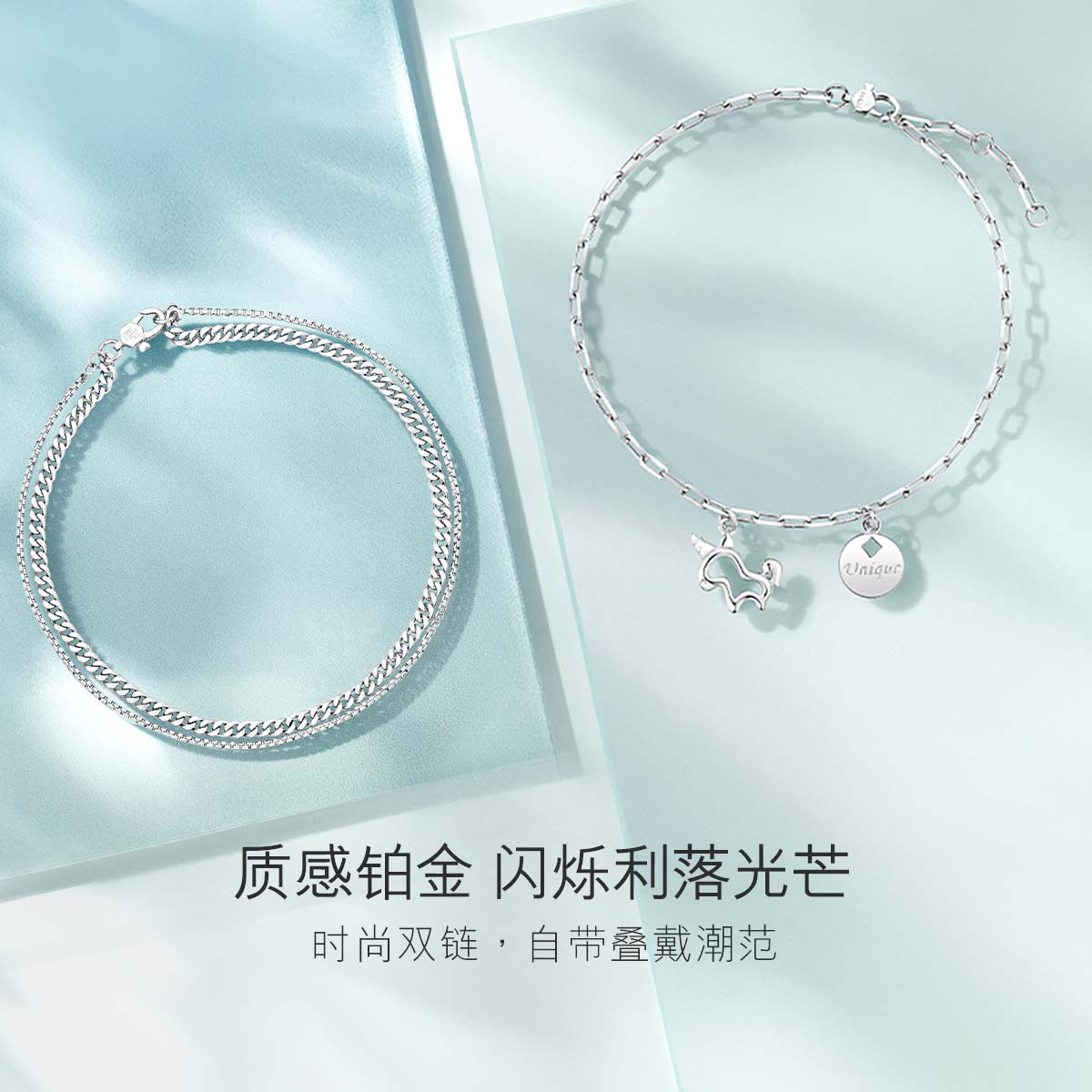六福珠宝双层链Pt950铂金手链女白金手链送礼计价L04TBPB0019