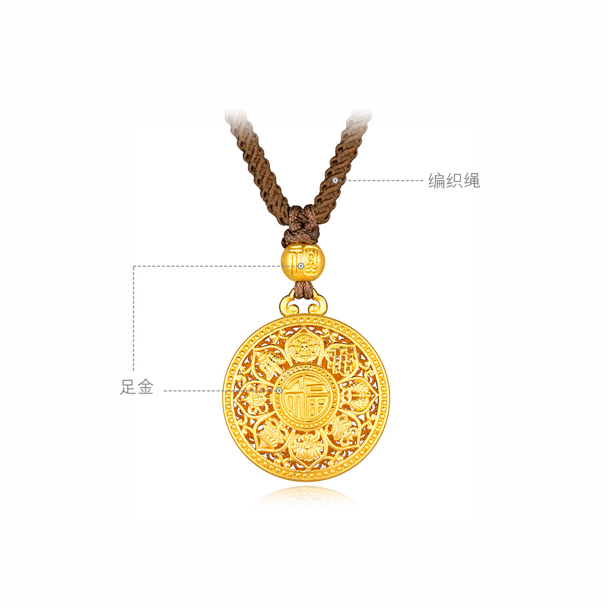 六福珠宝福满传家八宝罗盘黄金吊坠女含颈绳送妈妈莲花计价G23TBGP0003莲2